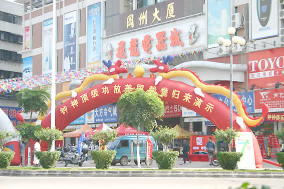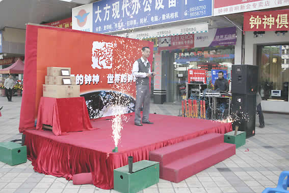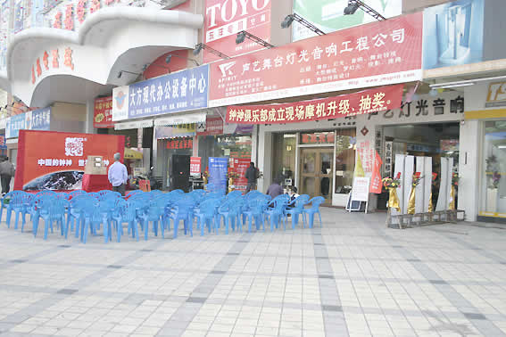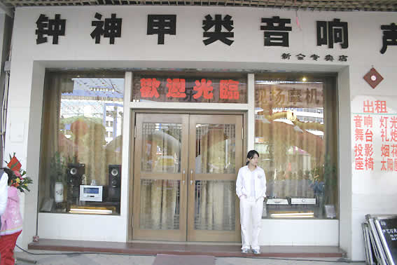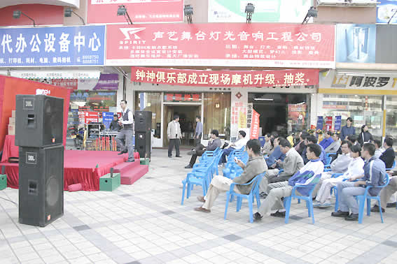 活动现场:冈州大道中55号106铺,钟神音响专卖店,现场已经张灯结彩等待盛会的召开。