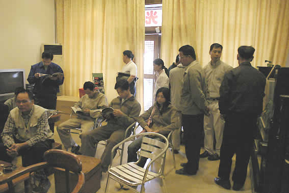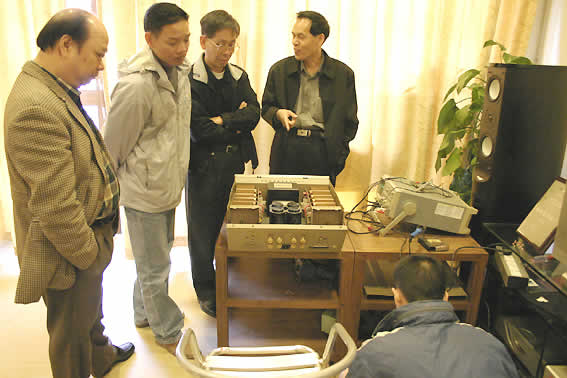 现场摩机是必不可少的节目。这几位是我们的铁杆发烧友。几年前他们购买了锺神产品,使用后非常满意,结果在他们的游说下,单位的同事先后成了锺神的用家。左边数来第一位现在还打算把旧器材送给他的女婿,让女婿也过上“音响发烧”的好日子,然后预足银弹再购入JA2/JA100旗舰。