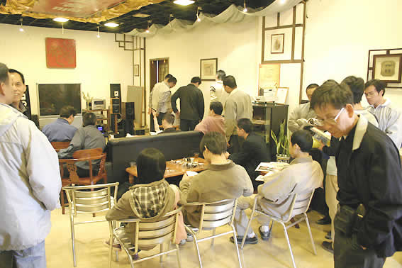 活动是从19日(星期六)开始的,白天人流不算太多,可能有的发烧友还要上班的缘故吧。我们有点担心冷场。到了晚上八点左右,人流越来越多,宽敝的大厅有的拥挤了,看来我们的担心是多余的。时值初冷,门外寒风凛咧,感谢各位发烧友的大力支持!