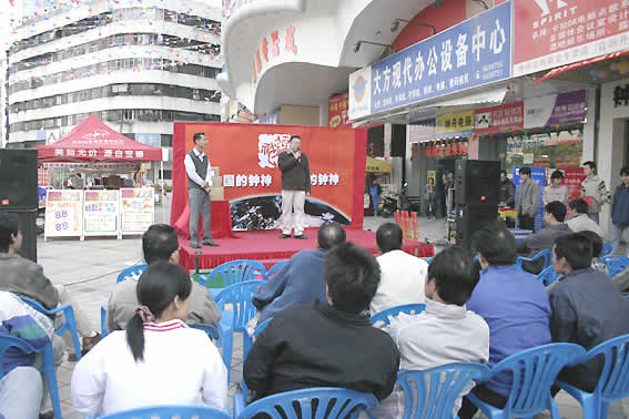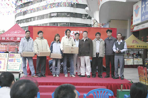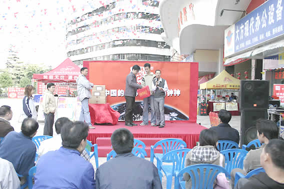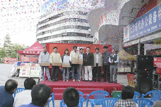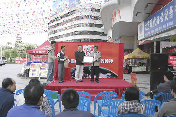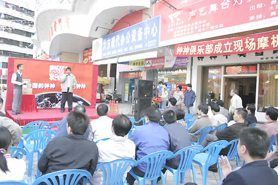 酒逢知已千杯少!活动第一天晚上和各位发烧友一起赏乐、品茶和谈论音响直至深夜12时才尽兴而归。结果第二天早上8点又要开场了(^_^)。幸亏新会的锺神专卖店同时经营舞台专业音响,搞这类庆典活动是他们的特长。