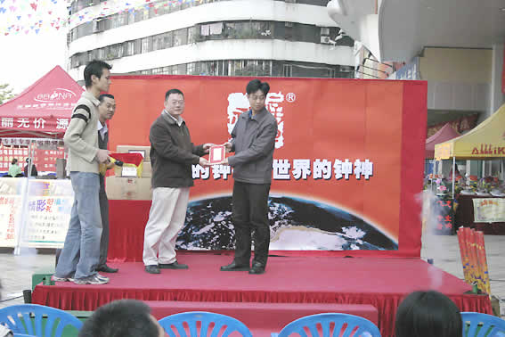 会长聘请仪式完后,抽奖开始,先由副会长抽出二等奖。