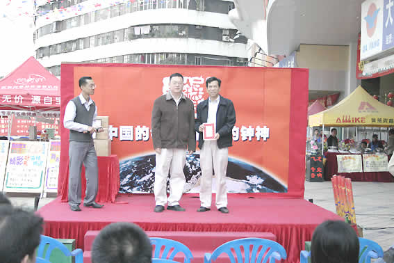 钟神董事长向新会区副会长钟国志颁发聘书,副会长的器材是AV1000,是HIFI与AV的双料发烧友。由于音响修为日渐提高,欲在纯音乐方面加强。最近对钟神的JA2/JA100标准版特别感冒。