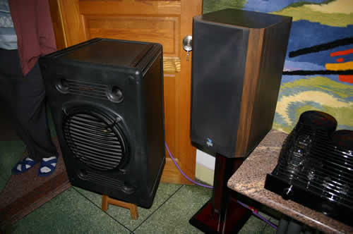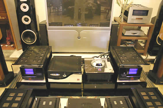 陈先生还拿出珍藏在家多年的一对后级,黑漆漆的,有点力无敌的味道。搭配JA2标准版前级推动美神一号,感觉别有一番风味。