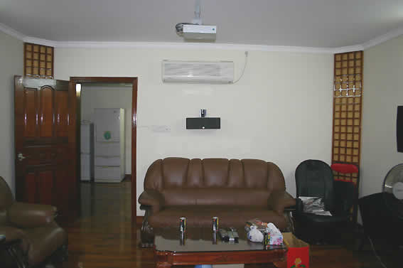 不要小看这个试音室,置身其中的吸音效果一流,比例恰到好处。据主人介绍,这是广州某著名音响试音设计师亲自主持修建。就说墙面装修就有好几层。先是特殊砖,然后再上峰窝板,这样声音不会反弹,再上一层特殊材料,表面涂高级ICI涂料。看来这个试音室花费不菲。
